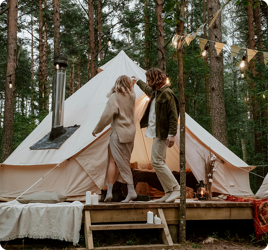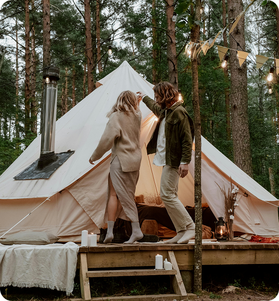 From cozy couples’ retreats to grand gatherings, our curated tent options blend natural aesthetics with thoughtful comfort.